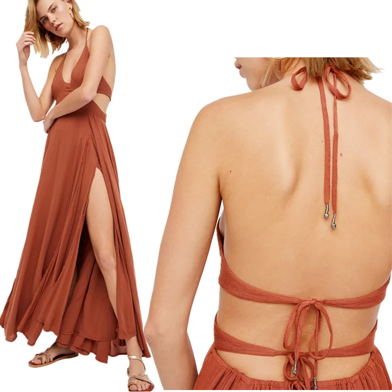 Canwedance Beach Sundress Backless Sexy Maxi Dress Floor Length Vacation Boho Dresses Overall Cotton Holiday Maxi Vestidos Mujer