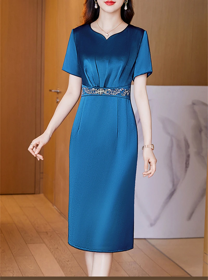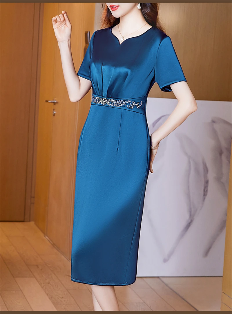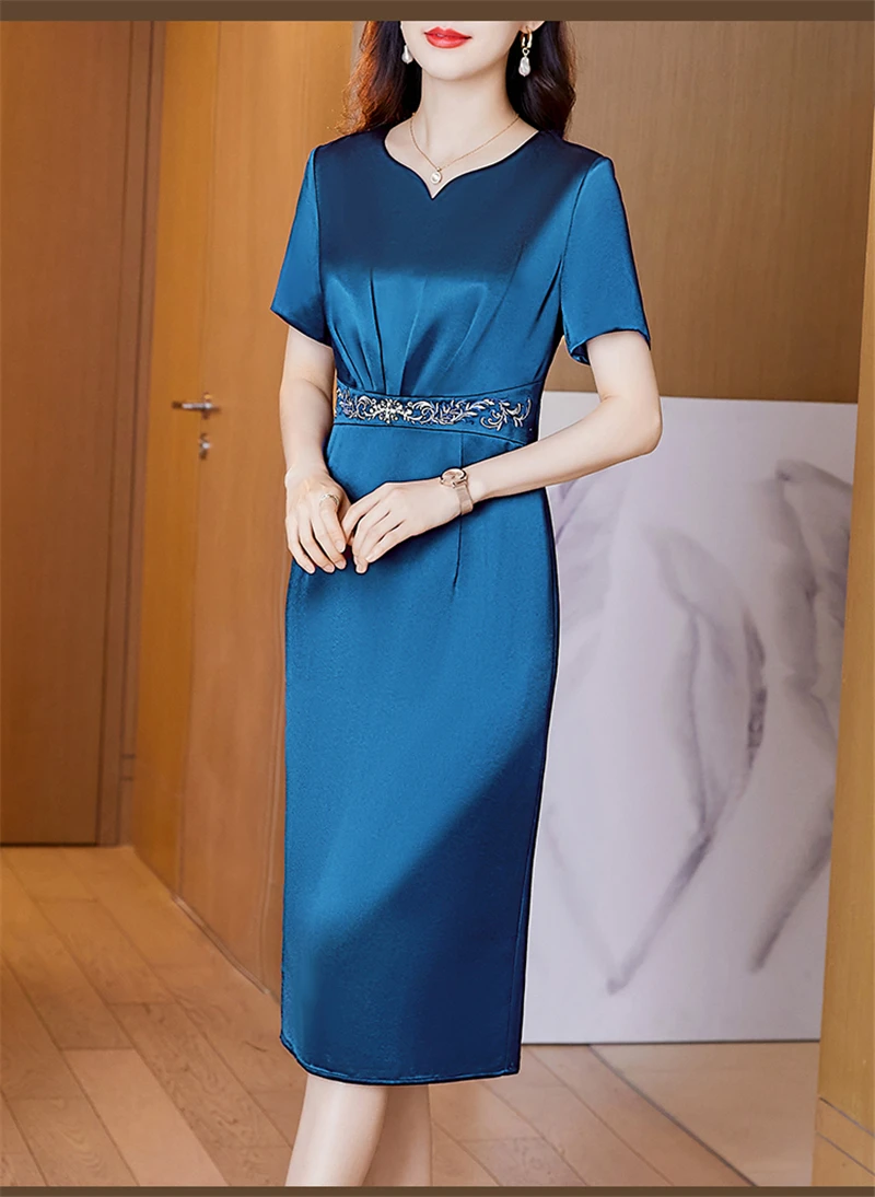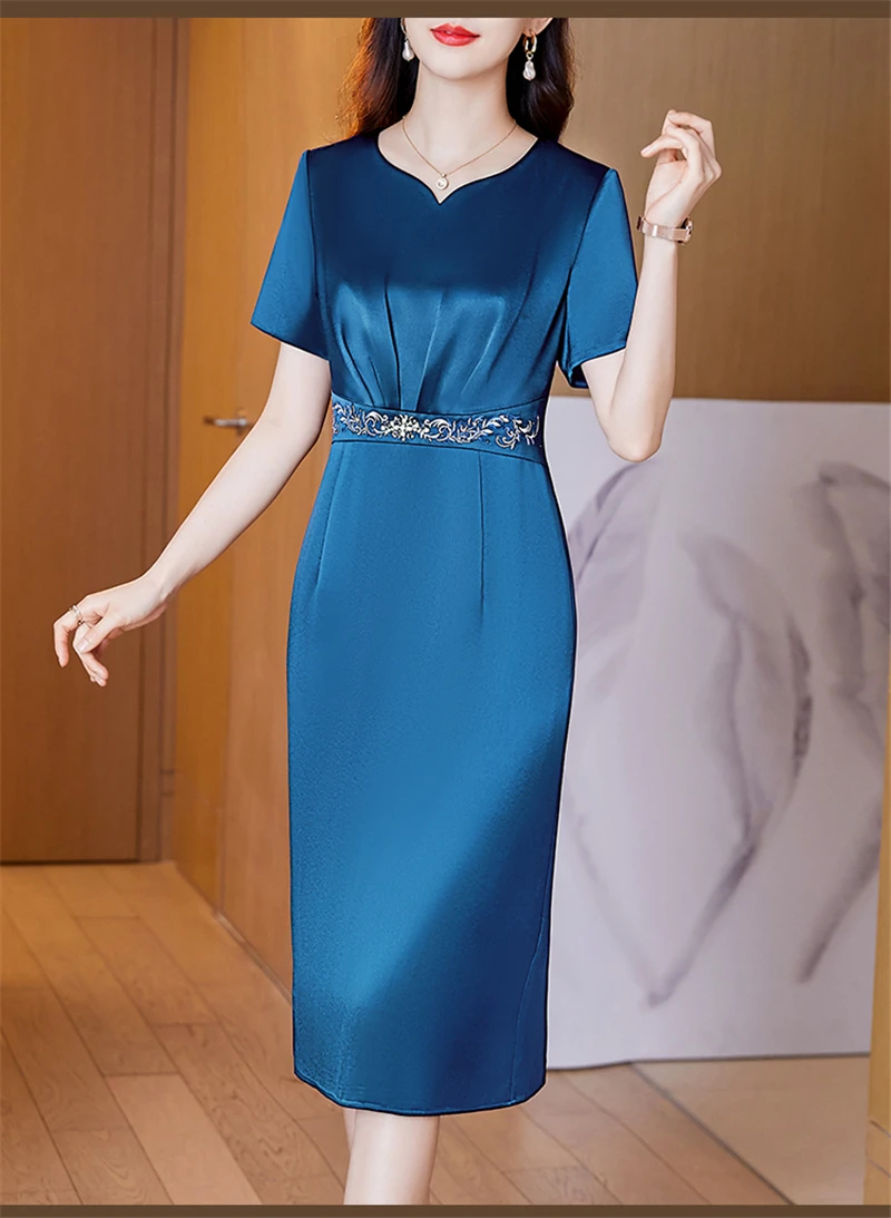 JiuMeiDai-Women's Elegant A-Line Embroidery Dress, Office Lady, Vintage Party, Designer Clothing, High Quality, Summer, 2024