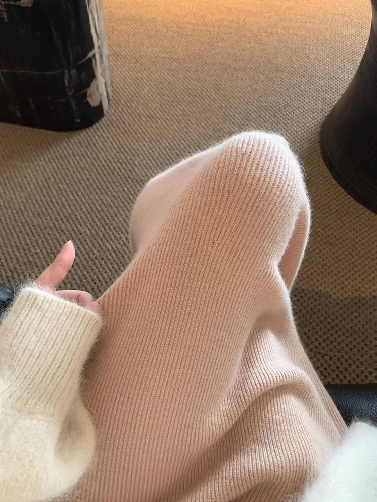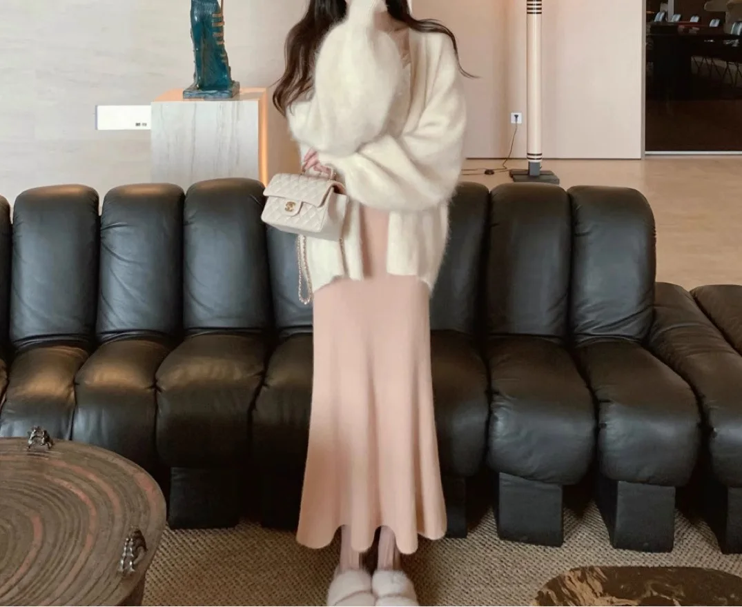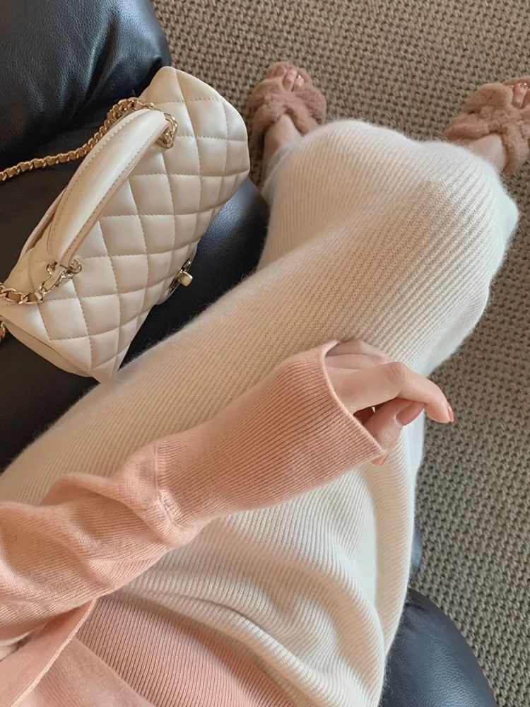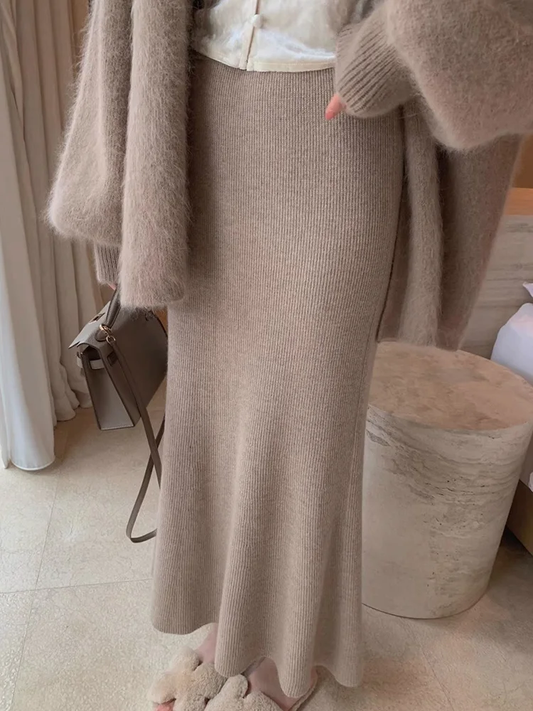 Knitted Skirts Women Fashion Vintage Casual Skirts Solid Slim High Waist Wrap The Buttocks Midi 2024 New Autumn Winter Skirts