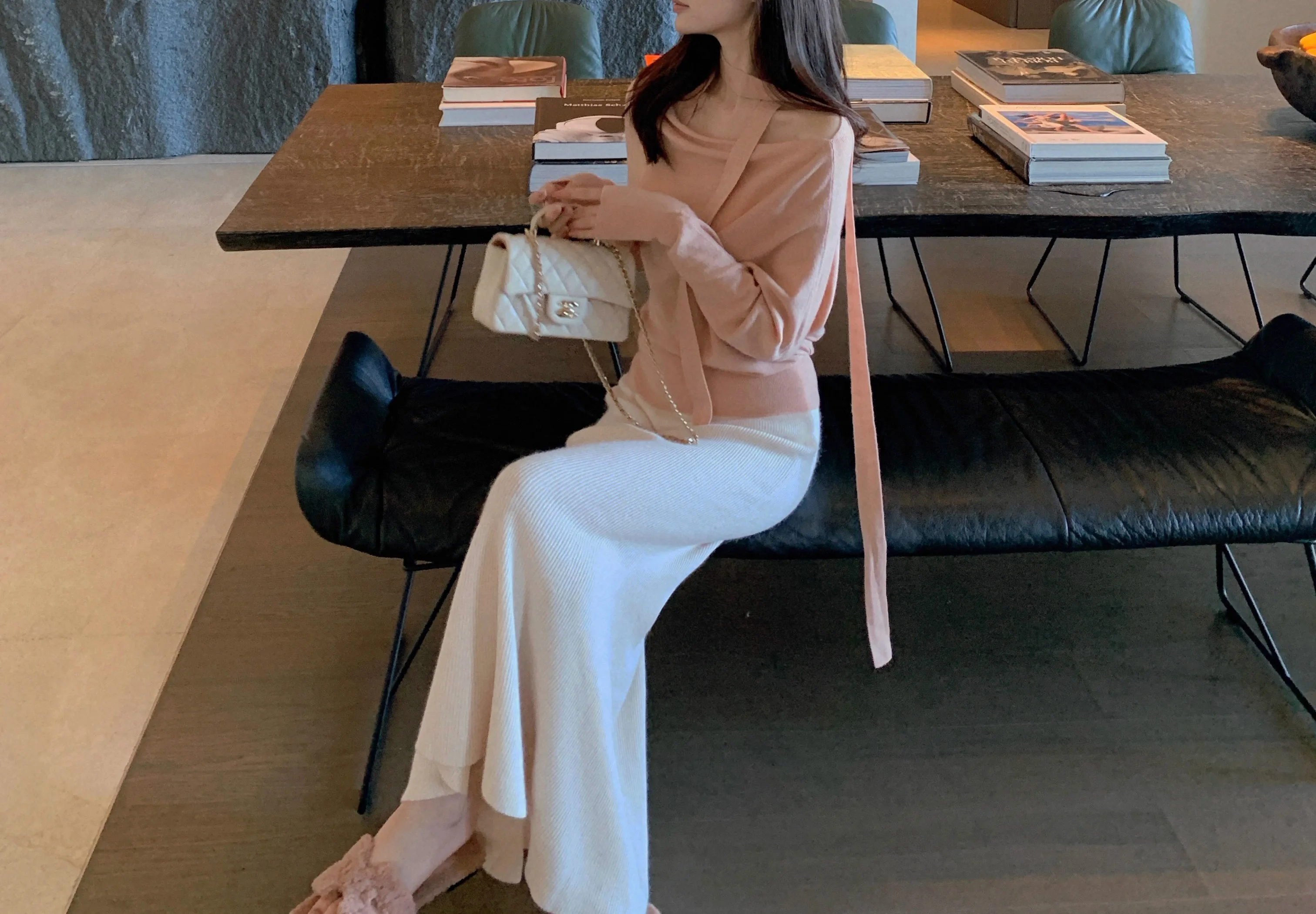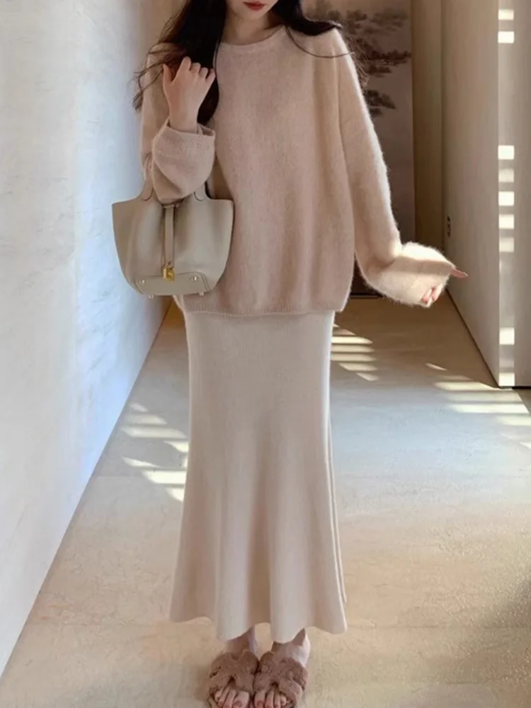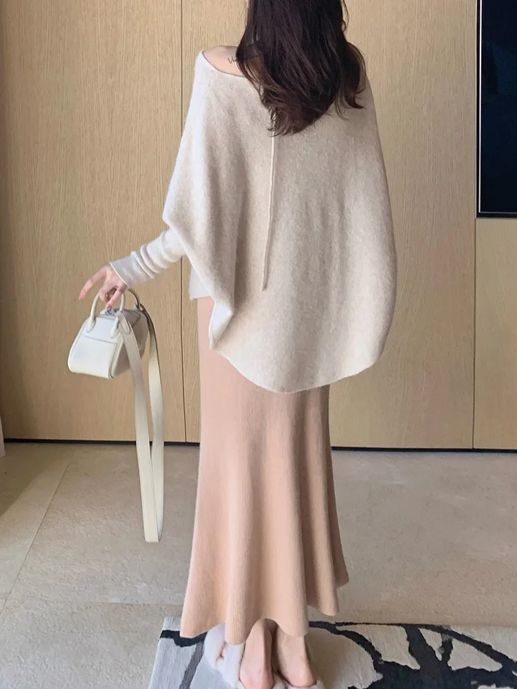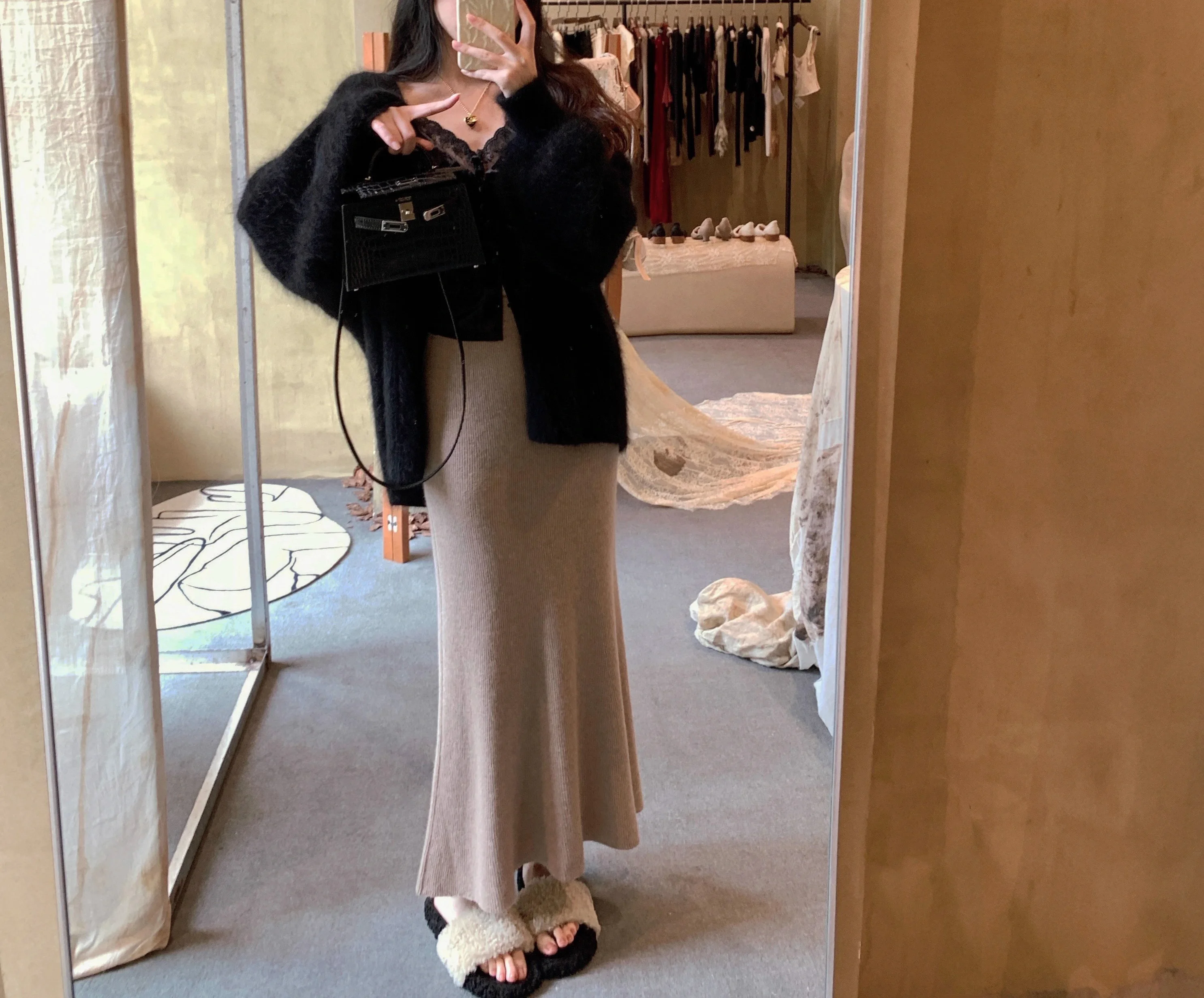 Knitted Skirts Women Fashion Vintage Casual Skirts Solid Slim High Waist Wrap The Buttocks Midi 2024 New Autumn Winter Skirts