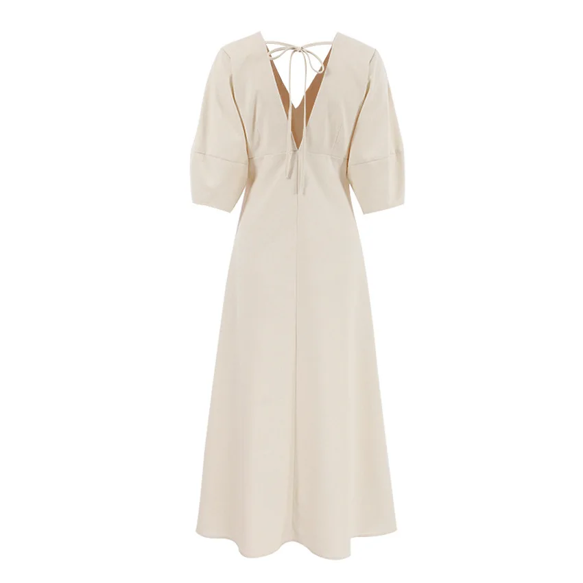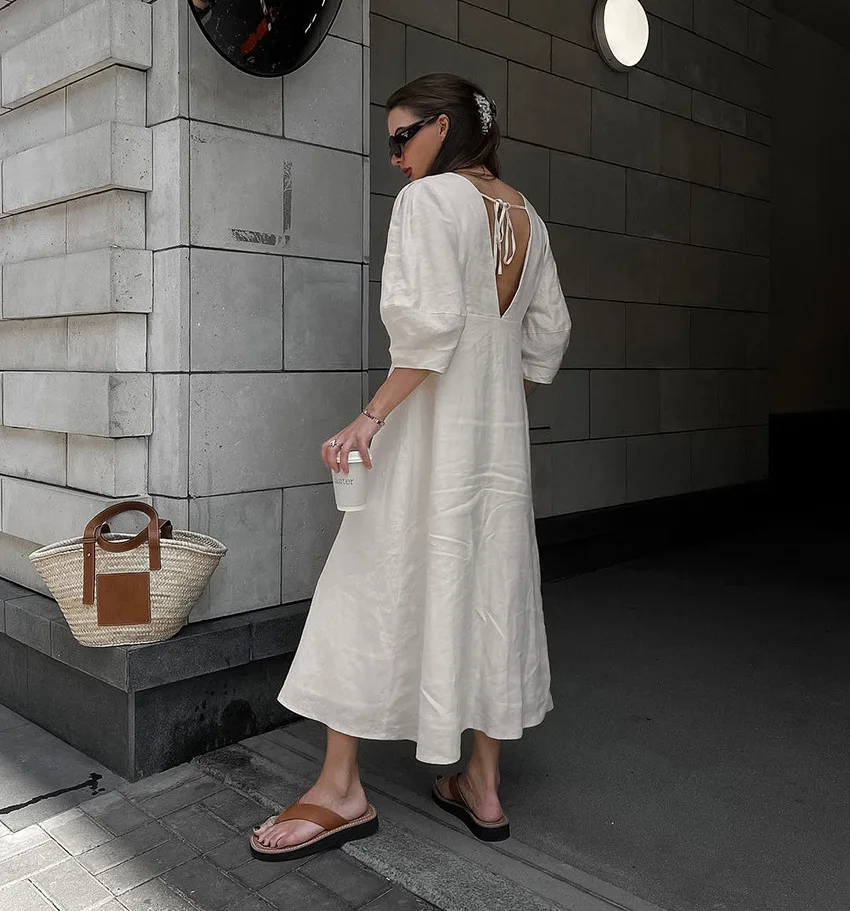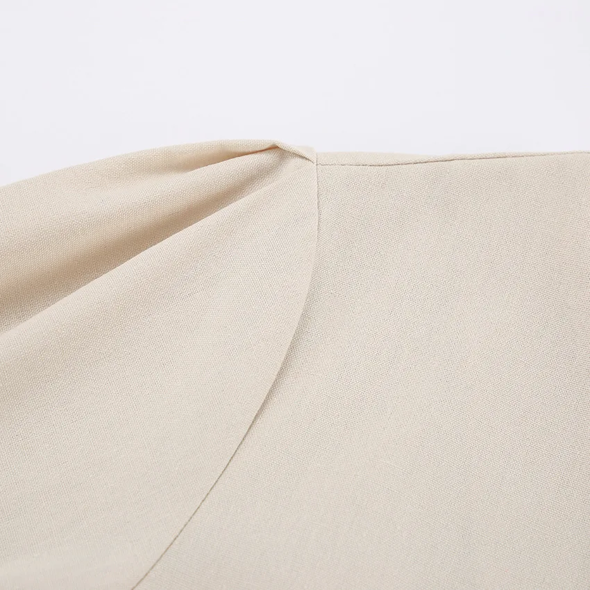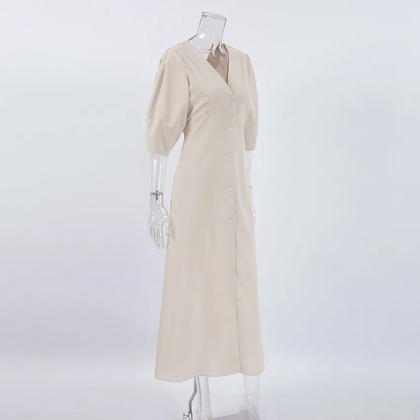 Retro Cotton Linen Women'S Summer Dress Sexy V-Neck Puff Sleeve Long Maxi Birthday Graduation Dresses Beach Sundress Robe Femmes