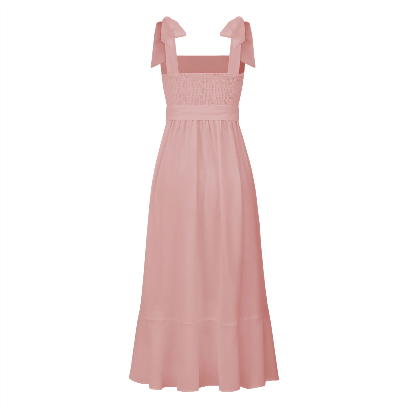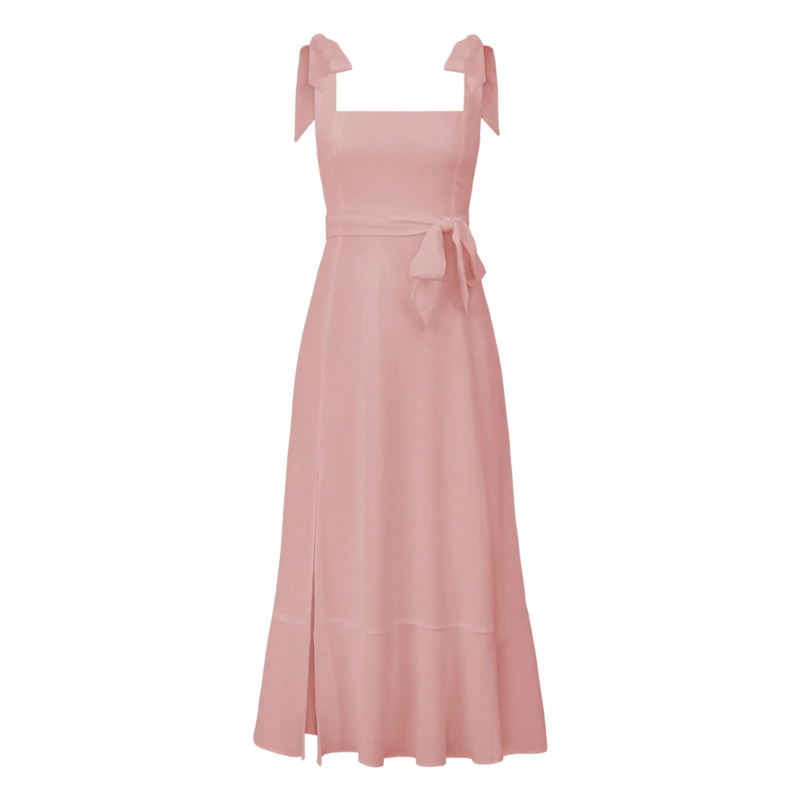 Stylish Elegant Women Solid Color Square Collar Bandage Dresses Summer Female Clothing Commute Lace Up Spliced High Waist Dress