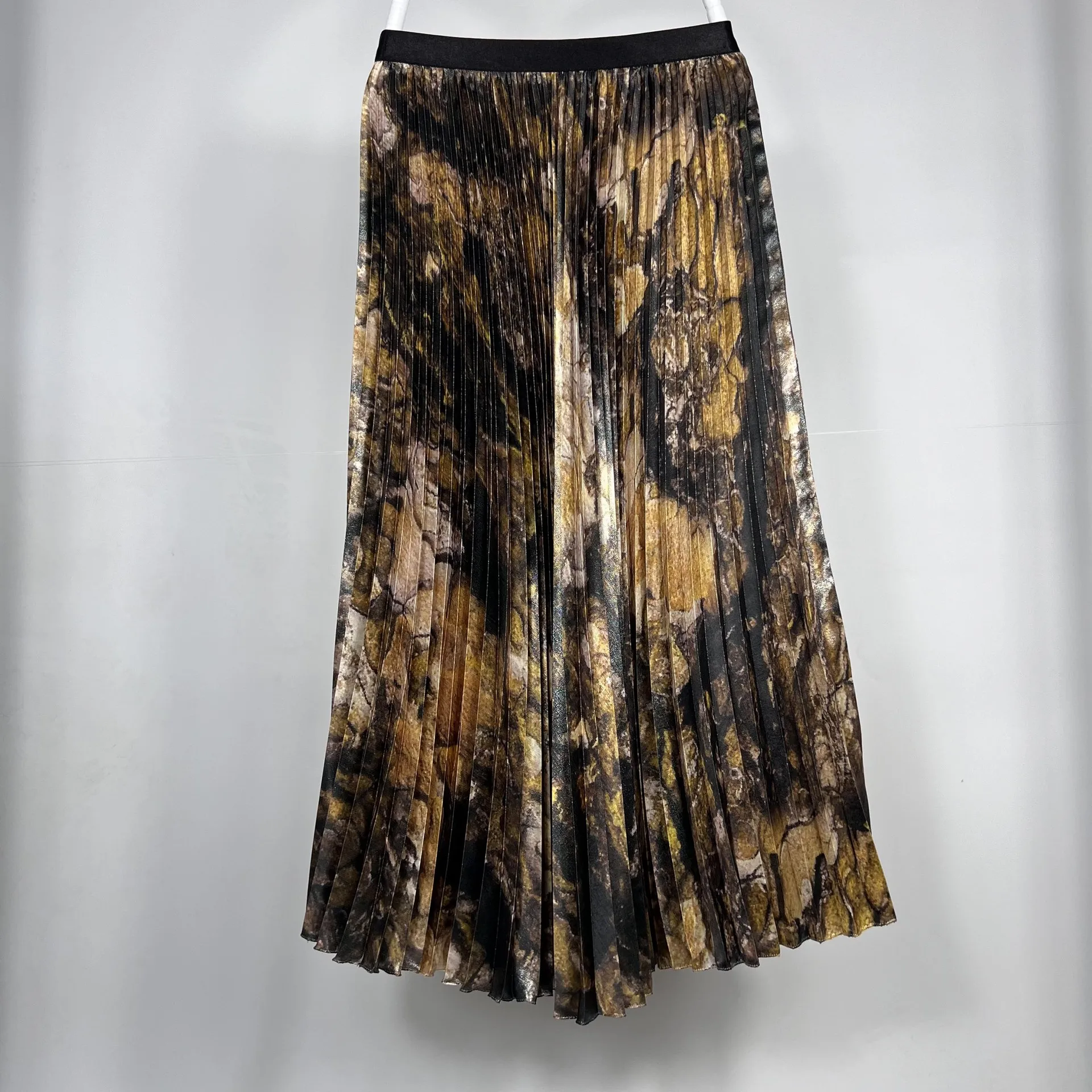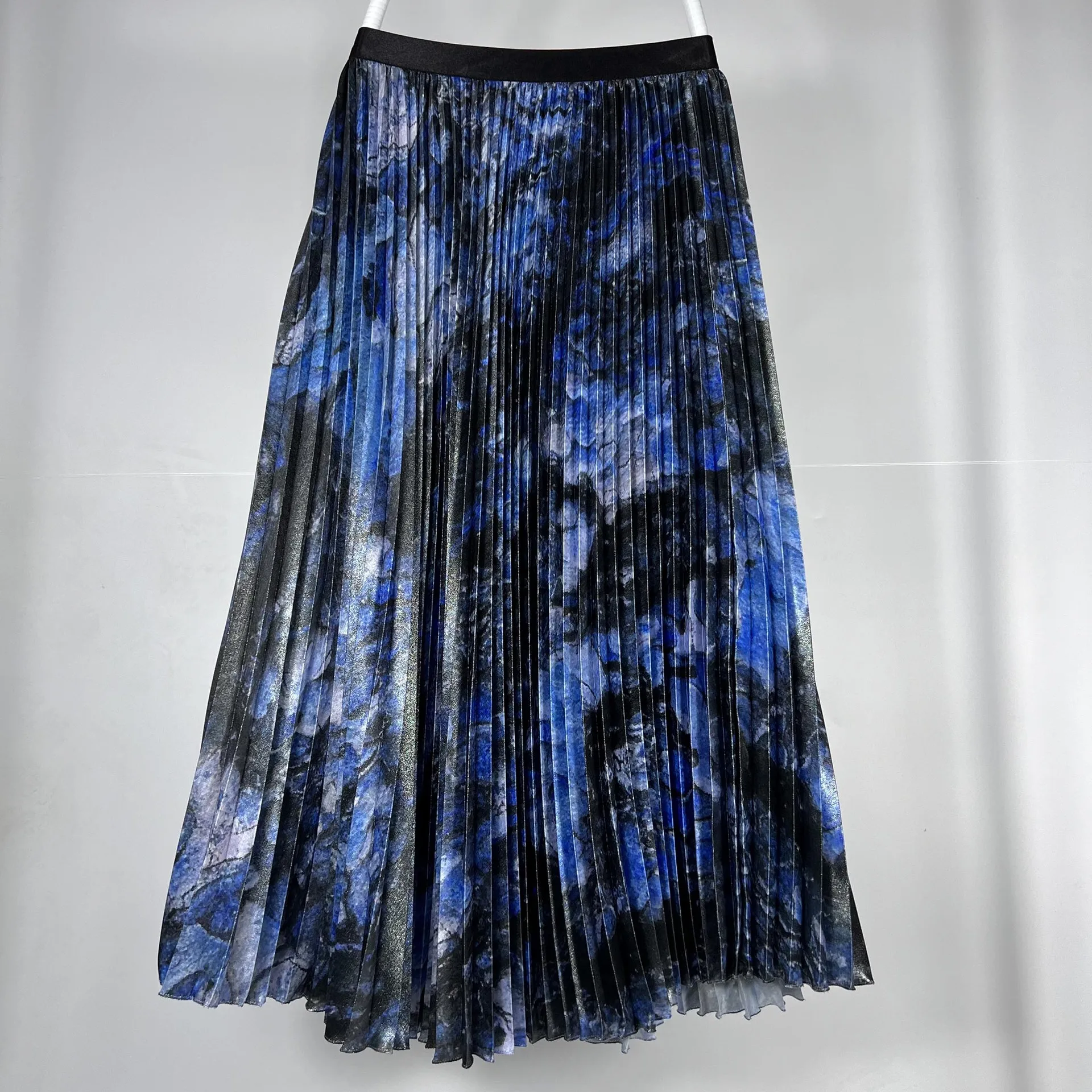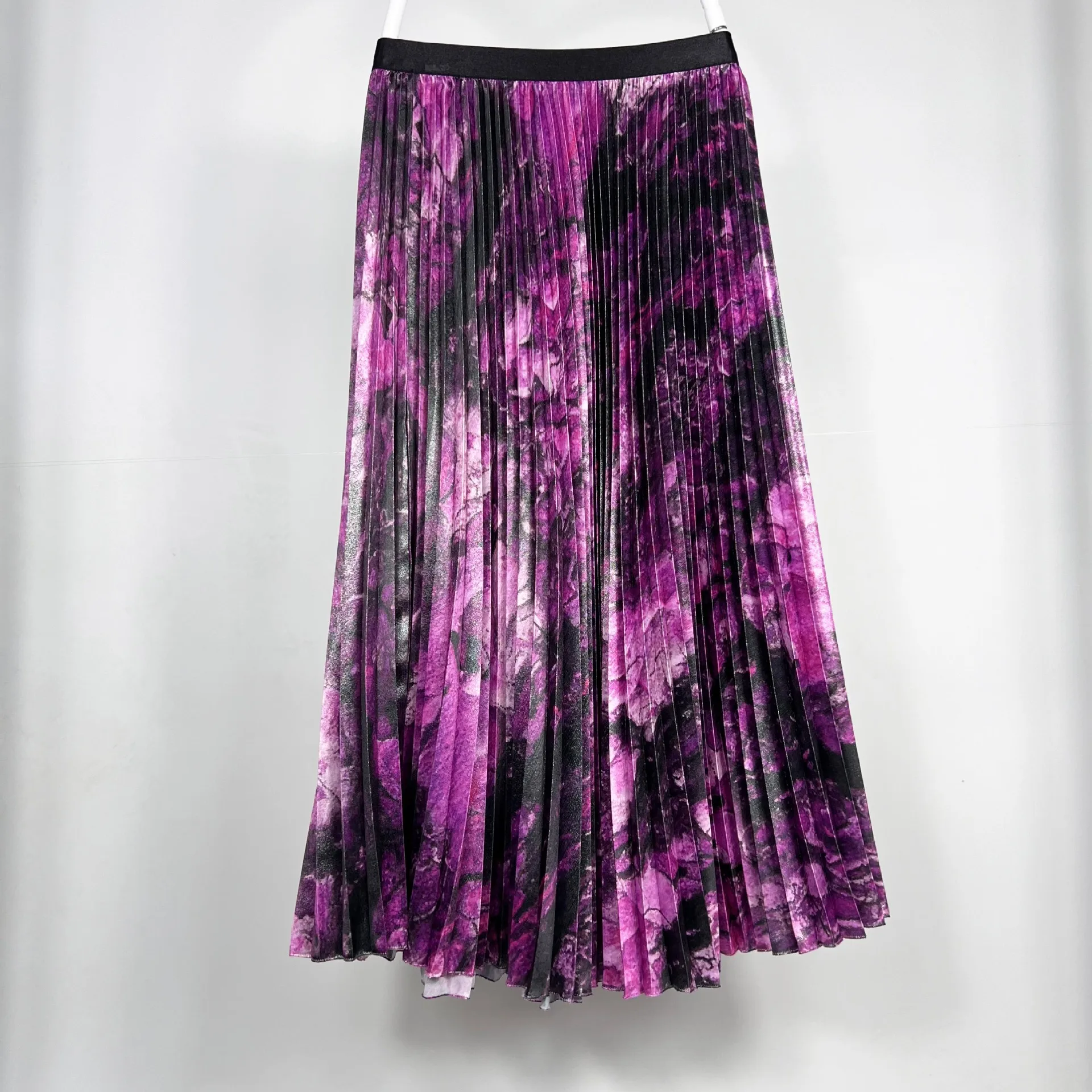 Vintage Floral Print Pleated Midi Skirt 2025 Elastic High Waist Artistic High Street Summer Women Long Skirt